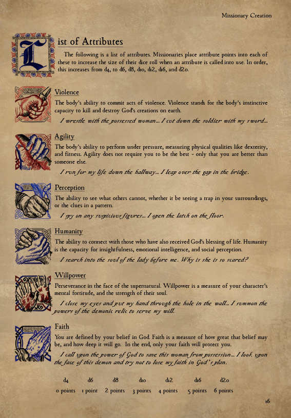 This is not a game for the powerful; but for the witty demonologist who is willing to put their soul on the line in order to free their brothers and sisters from the bonds of evil and sin.