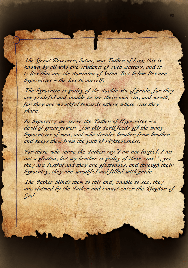 The Trial is designed as a vehicle by which the players and the Narrator can get to know the Missionaries the players have created, and explore, through roleplay, the choices the players made during the Missionary creation process.This type of scenario takes inspiration from similar concepts in other tabletop roleplaying games, such as the first session of many campaigns of Delta Green, which often involves the party being inducted into the eponymous secret organisation. It also draws from Vampire: The Masquerade, where players are encouraged to roleplay their experience of being turned into a vampire.
