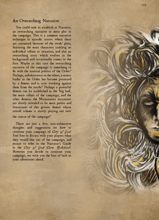 - 2) Two full scenarios for City of God which can be run as the beginnings of a full campaign.